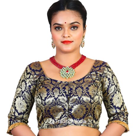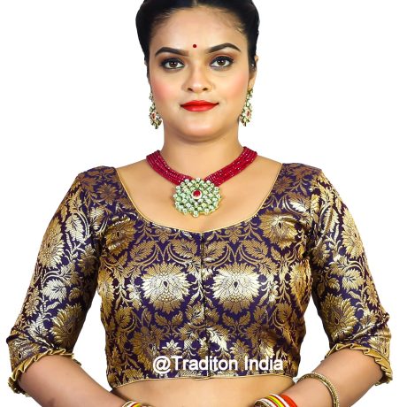 Dark Bluish Banarasi Silk Sari Blouse, Silk Saree Blouse, Readymade Saree Blouse, Readymade Sari Blouse, Saree Blouse Traditional Indian Saree Blouse, Indian Blouse